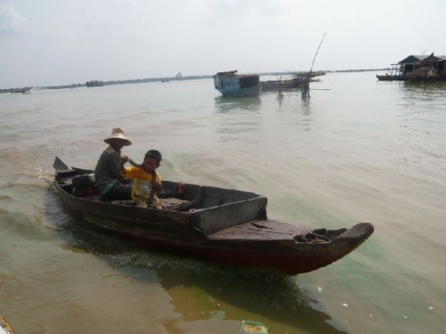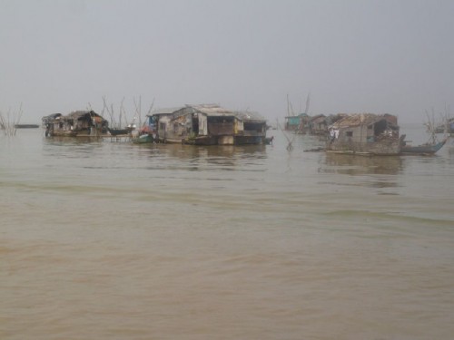 Our excursion south continued by boat to Tonle Sap, which means “Great Freshwater Lake” and is the largest one in Southeast Asia. It expands to four times its size during the rains in June and July at its Mekong basin. Flooding begins when the lake’s main outlet, the Tonle Sap River, reverses its course to flow north into the lake, causing its dwellers to move their homes up to fifteen times a year. The lake and its floodplain are vital to the country’s rice farming and fishing. As a seasonal wetland for migrating birds and other wildlife, it is recognized as a UNESCO biosphere reserve.