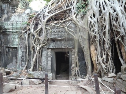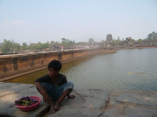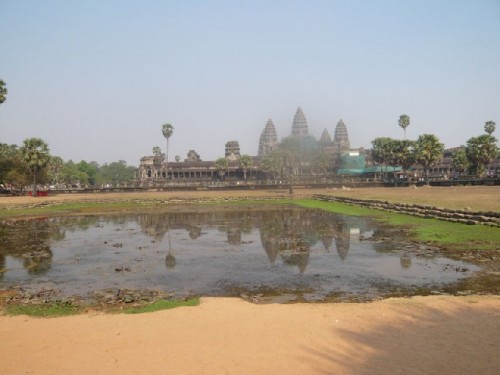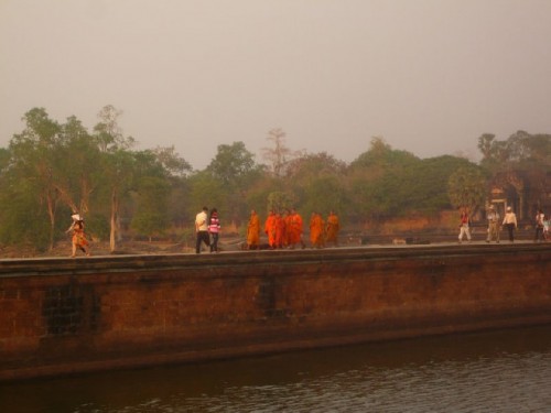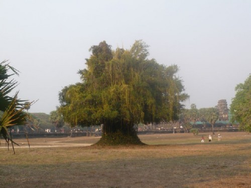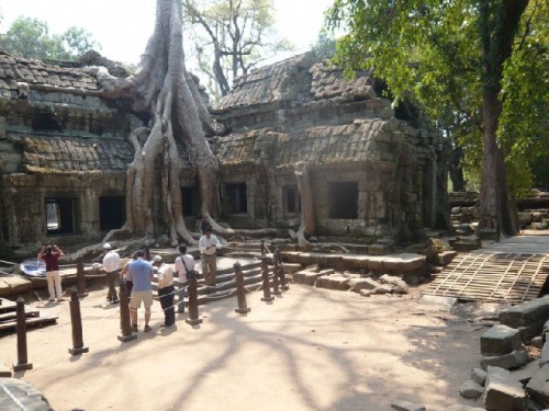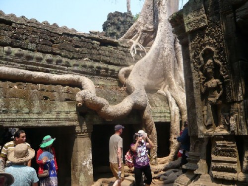 The next morning we departed from the hotel at 7:30 to beat the heat and the crowds for Angkor, the capital of the Khmer civilization, which ruled from the 9th to the 15th centuries. The current King of Cambodia, Norodom Sihamoni, and former King Norodom Sihanouk, who returned from exile in Beijing in 1993, come from a long line of monarchs going back to the ‘God Kings’ of Angkor. Discovered in 1859 by the French, Angkor became an overgrown jungle until 1992, when UNESCO declared it a World Heritage Site. Fortunately the ravaging Khmer Rouge, whose class war devastated Cambodia for three decades in the late 20th century, did not bomb antiquities; they only cut off stone Buddha heads to discourage religion.
