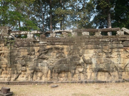Other structures we visited were the Hindu temple mountain Baphoun, the Elephants’ Terrace, and the Terrace of the Leper King. The former terrace, where bas-reliefs depict almost life-size elephants, was used by the king to review his forces and to watch entertainers; the latter, with carvings portraying court attendants and rulers, was a royal crematorium. Stones were brought from the quarry by boat and carried to the site on elephant back. They were then stacked without mortar and carved.