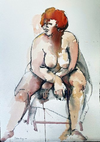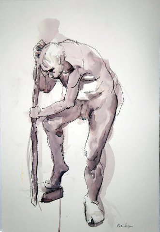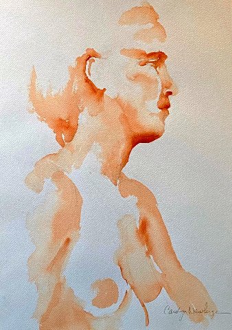 Much as the ballerina maintains and refreshes her practice at the barre, I return again and again to the figure for freshness, inspiration, and challenge. Typically working in broad strokes on paper with watercolor and charcoal or ink, in twenty minutes or less I seek to bring onto the page the ineffable personhood of the model, his or her thoughtfulness, mental state, humor and distinctiveness.