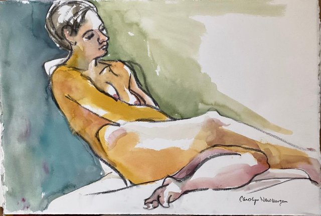 Carolyn Newberger came to art after a long career in academic psychology at Harvard Medical School. Watercolor painting, mixed media and collage, and a practice of drawing from life form the body of her work.