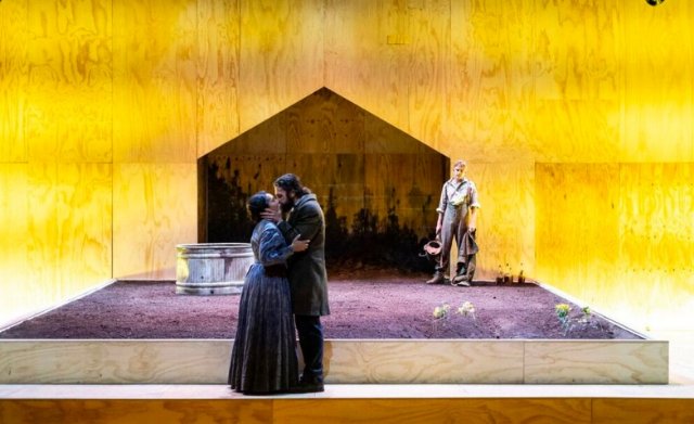All of this is captured in Mazzoli’s orchestration and the lines she has created for singers. Ensemble singing is thick with feeling: hope that the inspector will come and confirm the land they had cared for against all of nature’s odds for five years. Houses are to have one window, and the one in the neighborhood of Proving Up is passed around in a cooperative neighborly gesture.
