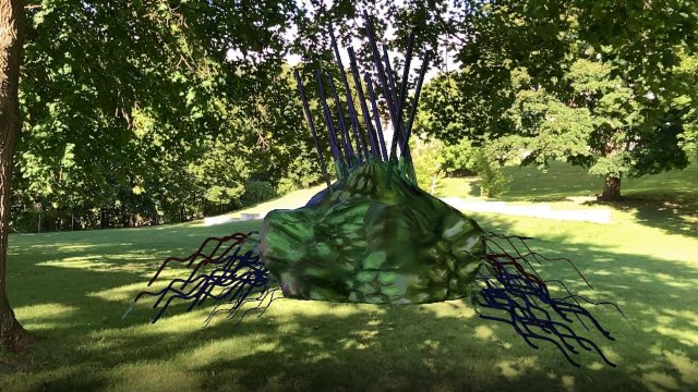Freeman and Lewy have installed their distinctive augmented reality works at the Installation Space gallery, as well as at access points in downtown North Adams public spaces. The augmented art is viewable by downloading the free Hoverlay app on a mobile device.