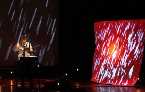 Vignettes were skillfully threaded into a floating electro-visual and sonic tapestry integrated with Anderson's trademark technologies, an electrically enhanced violin, videos streaming across screens and a gender-bending vocoder to alter her voice for different characters. The political and the personal were intertwined -the end of the U.S. empire and the death of her mother -and, at the heart of this cyclical tale of nature, culture and mortality.