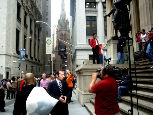 During these difficult times the New York financial district was dense with tourists as well as ubiquitous TV crews sending in timely reports. It was fun to listen in and catch the news as it was happening.