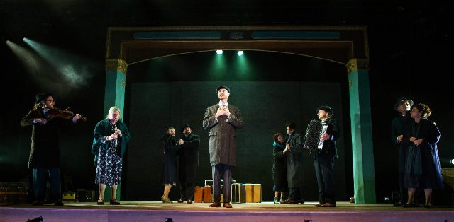 The bare, blackened, back stage and proscenium arch represent the tabula rasa upon which theater brings joy and sorrow. But what of its only props - several suitcases? Do they signify the travel of the play and its artists from place to place? Do they signal a search for a safe haven? Or do they hold the meager possessions that its owners would be allowed to carry with them to concentration camps and probable extermination?