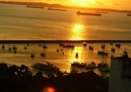 Crossing one of the squares, we ran into youth groups rehearsing for the festival. Among the spirited performers, most of the dancers were girls and the drummers were mostly boys, with the exception of a few girls in the front row. Nearby were vendors of a typical street food called acaraje, a type of Brazilian falafel made from black-eyed peas. Before calling it a day, we returned for another panoramic view from the Upper City to watch the sunset over All Saints Bay, where boats were silhouetted against the shimmering orange waters of the Atlantic Ocean.