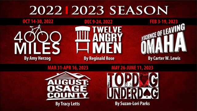 In addition to 4000 Miles, PBD during this upcoming season will present two Pulitzer Prize-winning plays, Topdog/Underdog by Suzan-Lori Parks, and August: Osage County by Tracy Letts. Also, the season will include the world premier production of Carter W. Lewis’s play, The Science of Leaving Omaha, and the classic work, Twelve Angry Men by Reginald Rose.