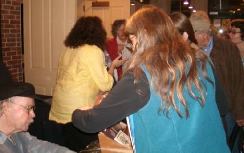 Before joining Tom as accompanist, local icon, Geoff Bartley, took the stage for a six-pack of his own creations. His songs tend to be richer in metaphor and lyrical allusion than do Tom’s and thus appeal more to our romantic inclinations. Performing for an audience clearly there to see Paxton, he nonetheless charmed us with his music and his patter. We applauded him enthusiastically. To perform your own songs as an opener to a legend like Tom takes a lot of confidence to pull off, as well as considerable talent. Bartley has both and as a local resident, well acknowledged for his contributions to area folkdom, he can be found performing regularly at Cantab in Cambridge and Smoken Joes Barbecue on Washington St in Brighton.