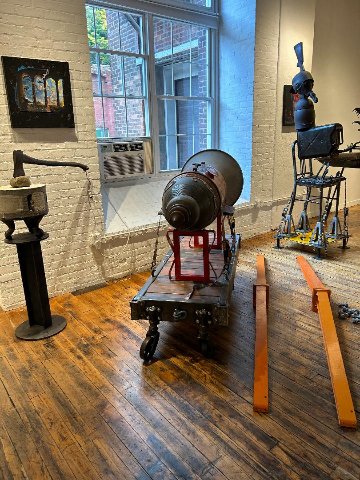 The materials for the recent assembled sculptures were scavenged during an artist’s residency at the scrap yard Mac Steel in Rutland, Vermont. “Because of liability issues most scrap yards won’t allow you to wander around alone,” he explained. “They take the opposite approach encouraging artists who work in metal.”