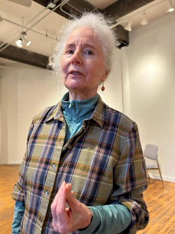 Joanna, known as Zan to her friends, stated that the work, a dramatic departure, had evolved over the past 18 months. Images displayed outside their ground floor loft affirm her as a master of intaglio printmaking. They entail a woman’s musing in a variety of settings and guises. There are frequent depictions of cats.