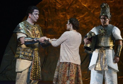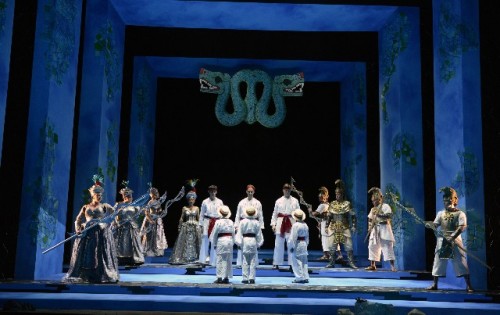 Some of the singers audibly and dramatically improved as the evening progressed, a sign perhaps of lack of adequate rehearsal time. In her first appearance as the Queen of the Night, So Young Park’s voice was weak and wobbly. The first of her spectacular coloratura arias was disappointingly earth-bound. But in Act II, when she sings an even more hair-raising aria, she was in fine voice, hitting each note in its center and turning out thrilling high notes. Similarly, David Cushing’s Sarastro lacked authority both audibly and dramatically when he first appeared, but when he sang the second of his great arias he inhabited the role fully and sang movingly. And when they first showed up in their quasi-Indian headdresses, the Three Ladies seemed to be singing against each other. Soon, however, they were blending their voices in the sweet manner Mozart intended.