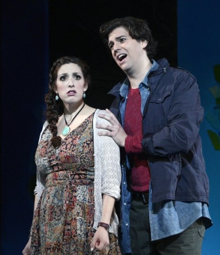 More problematic was the pair of lovers at the center of the story. Actually, Zach Borichevsky’s Tamino sang sweetly with an easy professionalism, but he was a bland presence who should, but didn’t, betray his noble stature even while dressed in college casual. His biography notes that he is appearing this season as Alfredo (“La Traviata”) at Glyndebourne, the elite English summer opera festival, and as Rodolfo (“La Boheme”) at the Finnish National Opera. He better develop a little more stage presence for those two big tenor roles. Of course, it was easy to understand why he exhibited little passion for his beloved Pamina, who was dressed in the dowdiest outfit on the stage. But the problem was that soprano Deborah Selig wasn’t right for the role. She had to force her voice unpleasantly to hit every high note, and she sang in general with little vocal allure.