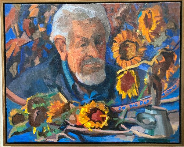 At an advanced age the artist continues to create in a traditional figurative manner. That approach started with Charles Hawthorne who, at the turn of the century, attracted students to the Lower Cape. That created the nucleus of an artists community that sustains to this day. The Hawthorne approach of naturalistic realism was passed to Del Deo through his student Henry Hensche. That deeply rooted approach is vividly evident in the artist's work with includes landscapes and figurative narratives. A recent self portrait conflates his image with colorful sunflowers.