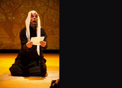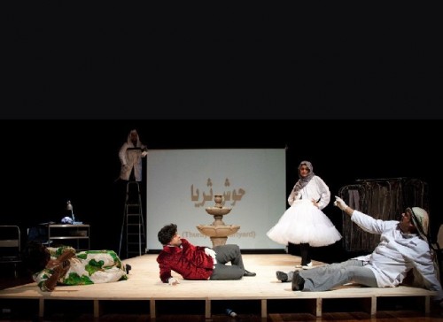 previously staging Hamlet and Henry the 3rd Sulayman al-Bassam’s Arabic reconstruction is of unprecedented realism with its six indecisive while uplifting endings.  Wa Dar el-Falak or The Speaker's Progress as its title indicates is a work in progress of 90-minute theatrical performance where the direction and acting are laboratories in a state of change and transformation, full of ambiguities and