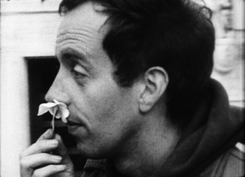 In the old Hollywood days movie studios would keep a man on the set who, when all other sources of ideas failed (writers, directors) was called upon to 'cook up' something for filming. He was called The Wild Man. The Flower Thief has been put together in memory of all dead wild men who died unnoticed in the field of stunt.“Ron Rice” Inspired by the poetry of Allen Ginsberg and especially by Robert Frank and Alfred Leslie's Pull My Daisy (1959), Ron Rice cast Mead as the protagonist of his own improvised, Beat-inspired vehicle: a picaresque ramble through San Francisco coffee houses, playgrounds and ramshackle seafront structures.