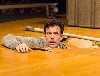 The Taper audience realizes right from the opening moments that they are in for a special and wonderful evening of humor and imaginative artistry when Pisoni, armed with a staple gun successfully “tames” a wandering spotlight by stapling the “light” to the stage floor – thus keeping the spotlight on himself. Its classic Commedia Dell’ Arte clown situation comedy; complete with pratfalls and varying degrees of physical humor always directed at himself and his situations which poignantly resonates with his audience.