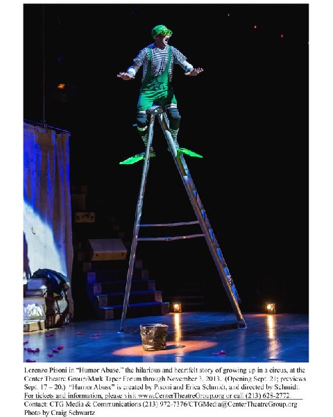 Solo efforts can reap the benefits that come from a second independent eye as a way of ensuring that the audience remains engaged and entertained. I’ve often said that only Olivier could direct himself. The current production on the boards of LA’s Mark Taper Forum is a clever and highly imaginative little gem of a show dealing with the world of clowns entitled “Humor Abuse”. It is brilliantly performed by professional clown and actor Lorenzo Pisoni and is winningly directed by co-creator Erica Schmidt.