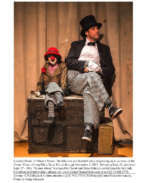 The current production on the boards of LA’s Mark Taper Forum is a clever and highly imaginative little gem of a show dealing with the world of clowns entitled “Humor Abuse”. It is brilliantly performed by professional clown and actor Lorenzo Pisoni and is winningly directed by co-creator Erica Schmidt.