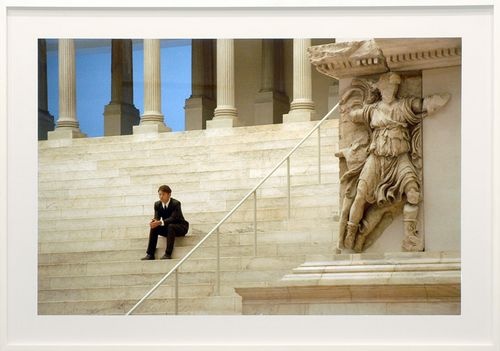 Sussman has adapted this story to a 1960's context. The art direction recalls the styling of European films of the era: Alain Resnais' "Last Year at Marienbad" Federico Fellini's "La Dolce Vita" Michelangelo Antonioni's "Red Desert" and from an earlier era the tormented bodies of the 'battle' scenes of Sergei Eisenstein's "Potemkin." Sussman has shot the piece in Greece and Berlin in the site of Fascist architecture of the Berlin Airport or the classical arenas of the Pergamon Museum, an ancient stone amphitheater, and a stark soccer field. The imagery is gorgeous and evocative but derivative.