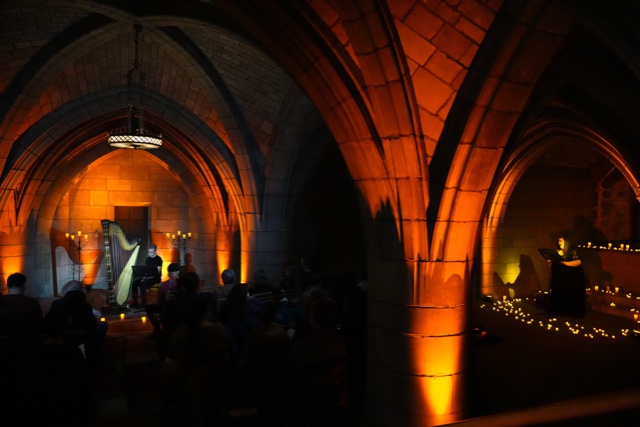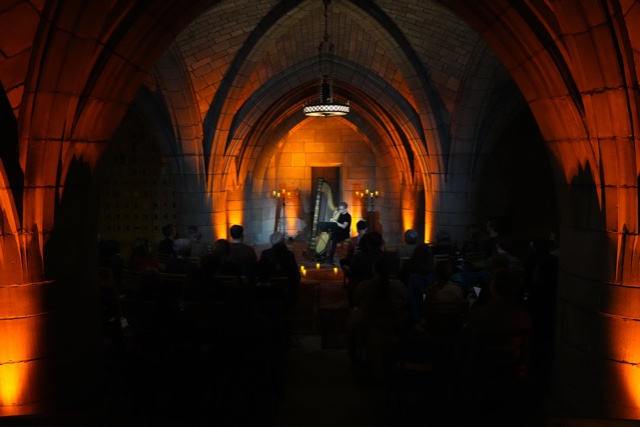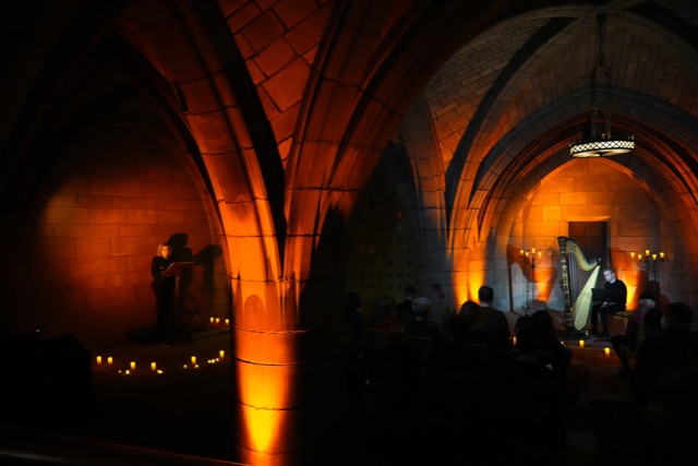 Goodman’s text is interspersed with music on the harp and plainchant solo singing by Hannah Spierman, a soprano. Spiderman, a graduate of the New England Conservatory, has recently performed in Weber’s Der Freischütz, as Tatyana in Tchaikovsky’s Eugene Onegin as well as soloist with New York Choral Society and Canterbury Choral Society for Brahms’ Ein deutsches Requiem.