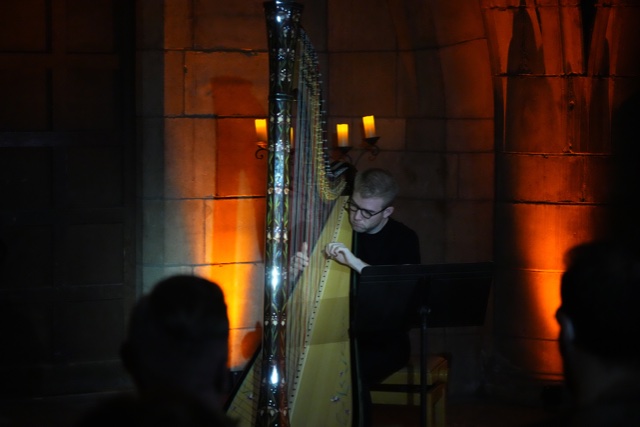 The harpist, Parker Ramsey, refers to himself as a recovering organist. After a huge success transcribing Bach’s Goldberg Variations for the harp, he was looking for a second work when he met Nico Muhly who has liturgical background. The hymn Onward Christian Soldiers is lifted in its entirety in his opera Dark Sisters.