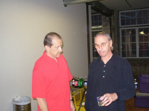 Bartenders Roman and Carl share a moment during the reception.