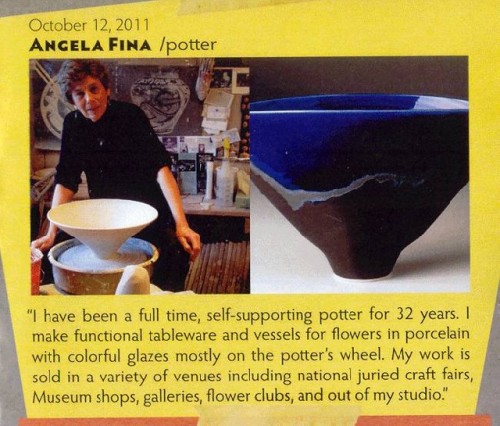On Wed, October 12th, the Art Tea season kicked off with eminent Berkshire potter, Angela Fina. She spoke and answered questions, sharing in much detail the events and the artistic choices she had made in pursuit of her art. The appreciative audience was made up of students, faculty and many members of the Hardwick community. The Art Teas schedule for the rest of the season is as follows.