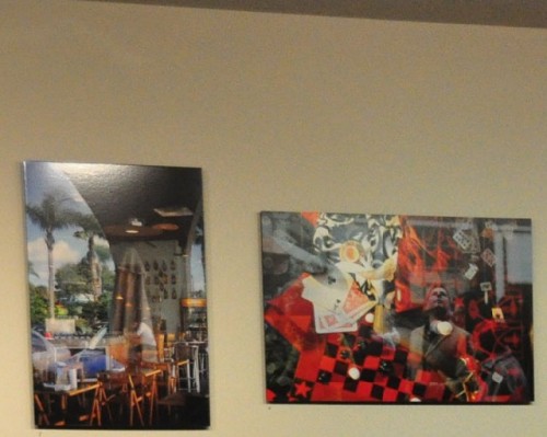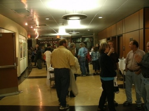On Saturday October 8th, preceding the David Mallett concert a gallery reception was held to celebrate the first exhibit of the season. Entitled Mind Motion and featuring a series of paintings from Rochelle Shicoff’s “Behind the Dreams” series, the exhibit also displays the fluid geometric meditations of Kim Carlino and the urbane, richly colored, multilayered photographs of Easthampton artist, Denise M. Riggs. Ms. Riggs achieves her remarkable results without cropping or editing. This exhibit will remain open Until January 20, 2012. On longer loan and still on display are several large works by another premier Easthampton artist, Marcia Reed. Although not formally part of the Mind Motion exhibit, this observer them to complement the theme quite well.