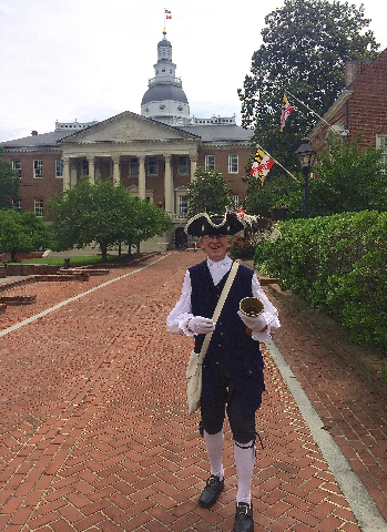 One of the loveliest and most historic cities in the United States is Annapolis, Maryland, incorporated in 1708 and the capital from November 1783 until August 1784. When visiting, and stepping back to the 18th century, what could be more appropriate than listening to all the news from the Internet of that day…a towne crier? Criers traditionally carry a handbell to attract people's attention, as they shout the words "Oyez, Oyez, Oyez!" before making their announcements. (The word "Oyez" means "hear ye," which is a call for silence and attention.)