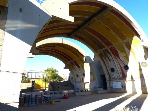 In 1966, he began working on the design for the Paolo Soleri Ampitheatre in Santa Fe, New Mexico. It was built for the IAIA (Institute of American Indian Arts) on what is now the campus of the Santa Fe Indian School using large silt cast forms. The property is owned by the nineteen Native American Pueblos of New Mexico and is therefore not protected by local or state preservation laws.
