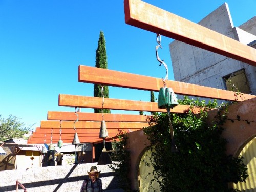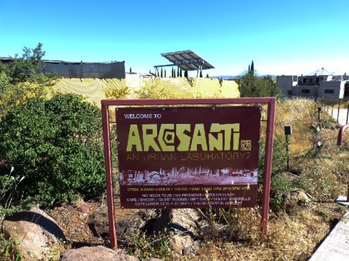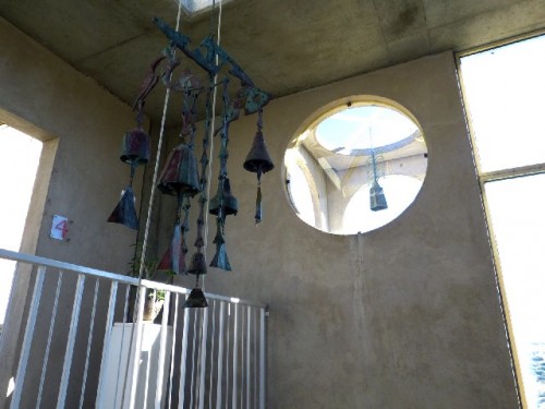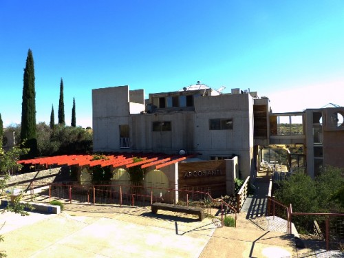 The Italian born architect purchased land and established a laboratory for experimental architecture above an aquifer some 75 feet below ground. Water is essential to sustain life in the desert. Sunlight, a readily available and free resource, was used as passive solar energy in designs which were experimental when he started construction with groups of interns and followers in 1970.
