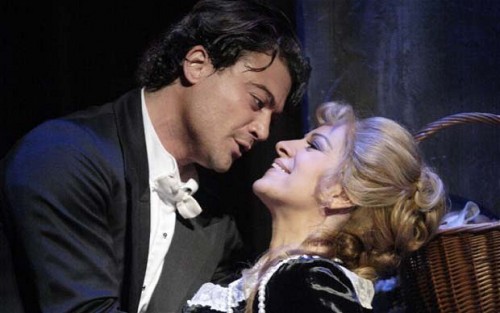 In a performance of Faust broadcast from Royal Covent Garden in London, the young phenom Vittorio Grigolo led a stellar cast including Angela Gheorghiu as Marguerite, Rene Pape as Mephistopheles and Dmititri Hvorostovky as a heart-wrenching Valentin.
