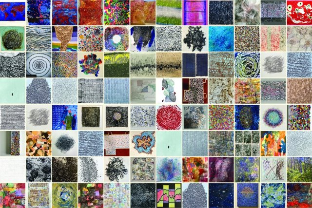 Liz Awalt says about her collective project: “when the numbers of COVID-19 deaths skyrocketed in December 2020, I was struggling to justify my painting practice amid the raging virus, divisive politics, and racial injustice in our country. I decided to respond by acting on an idea that broke through my sense of despair. This idea was clear and simple: make a painting with one thousand separate marks, where each mark represents and honors a life lost to COVID-19.”