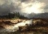 When I first caught sight of Calame's two large finished works in the exhibition (which were, rather strangely I thought, hung side by side, I immediately recalled the dramatic landscapes of Jacob van Ruisdael, especially a view of a "Waterfall with a Half-Timbered House and a Castle" in the Fogg Art Museum, indelibly engraved in my memory by many casual encounters as a student rushing to class through the galleries, or even a few concentrated moments of study. I was not surprised to find that painting illustrated in the catalogue as an example of the influences absorbed by Calame on his 1838 study trip to Holland. Furthermore Ruisdael is not only typical of Romantic taste in Dutch landscape, he is, according to de Andrès, typical of the taste of the Protestant collectors in Geneva, where Calame grew up.
