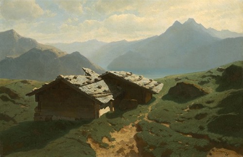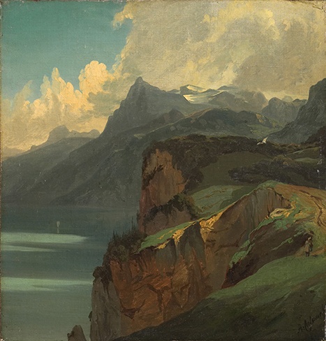 "I should be content if my portraits of the great Alps can make people say that the Heavens speak of the glory of God and that their breadth make known His handiwork. The Creator is alive in me, and, as everything is intimately intertwined in our nature, my work takes part to the service rendered by my soul to the Author of all beauty and all truth."—Alexandre Calame*As grandiloquent as it is, Calame's statement appears sincere, just as his work is sincerely founded in his Calvinistic devotion and inspired by its mystical intensity—a quality which raises it above its immediate purpose of providing views of fashionable touristic locations for wealthy aristocratic and haut-bourgeois visitors to Switzerland. In his own lifetime as today Calame enjoyed the reputation as the best of several Swiss painters who created these views of the their homeland for an international public. He rightly occupies the center of this selection of works from a private collection, that of Asbjorn R. Lunde, consisting mostly of oil sketches executed in the field by Calame and his predecessors, competitors, and followers.