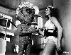 Synopsis of the plot of The Ship of Monsters is pretty far out. The last man on Venus has died. In order to save their planet, two Venusian astronauts, Beta (Lorena Velazquez) and Gamma (Ana Bertha Lepe), blast off to find men on other worlds. After collecting a motley crew, the Venusians crash land their "Ship of Monsters" into the closest planet, Earth, which they have overlooked. Upon landing in rural Mexico the two interstellar babes find themselves face-to-face with the sly, witty, and affable, singing cowboy Lauriano (played by Jose Gonzalez). The remainder of the film is an action-packed story of survival and cunning as Lauriano and Gamma take on Beta (who is also a vampire) and the hideous monsters in order to save planet Earth.