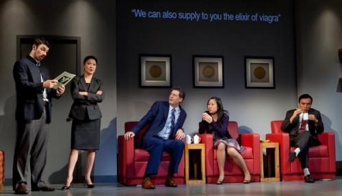 The premise of the play is a kind of gag about Chinglish which is the scrambled syntax of conflating two very different languages. There are projections of running translations, in hilarious English, of what is being spoken in Mandarin during the gonzo business meetings. Over two acts it wears thin.