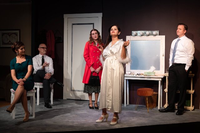 Movie fans will know the 1950 film All About Eve, winner of six Oscars including Best Picture, as a true Hollywood classic loved by critics and audience alike. Musical fans will know the Broadway hit Applause, winner of four Tonys, also a classic. Both were based on an earlier short story called The Wisdom of Eve, written by Mary Orr. The title comes full circle with the subsequent play adopting the name of the original story, and in this form, it is a metatheatrical drama, focusing on the backstage and backroom machinations of theater people and productions. Clearly, the story of ambition and betrayal with crackling dialog has legs, and the Altarena Playhouse presentation entertains as the actors relish the clashes of personalities and desired outcomes.