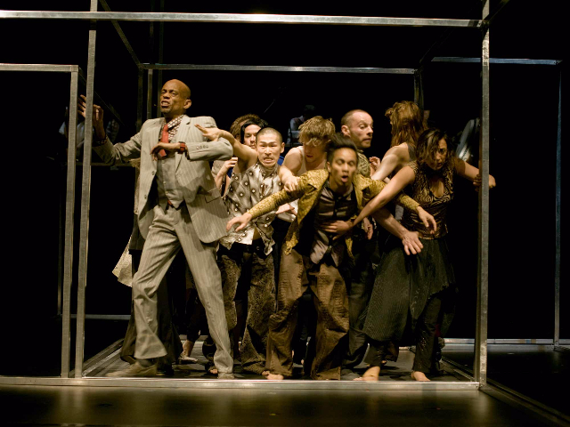 Dancers from thirteen countries grace the stage in one of the after effects of dispersal. Nationalities vary, and so do styles, incuding hip hop to contemporary African. Images included Bruegel, Gandhi, and Frank Wedekin's Lulu, who teeters around the stage in high boots and shiny patent pants, wound up and down by manipulators. Dancers in a boxing ring look like a George Bellows painting.