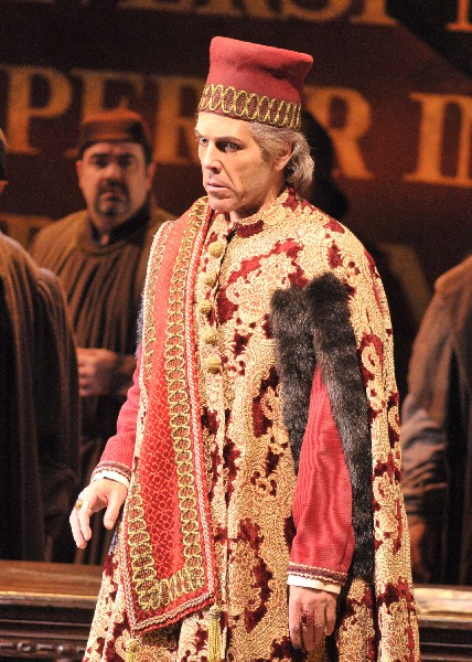 Frank Lopardo is a Lyric stalwart. In the role of Adorno, his soaring tenor has just the right edge to pierce the orchestra and capture the ear. Adorno in Lopardo's performance is no longer the weaker of Amelia's two suitors. His voice mixed in an exciting and rich style with Stoyanova's and they made a convincing romantic pair. Lopardo takes us from cocky suitor to tender son-in-law of his arch enemy with thoughtful, beautifully sung ease.