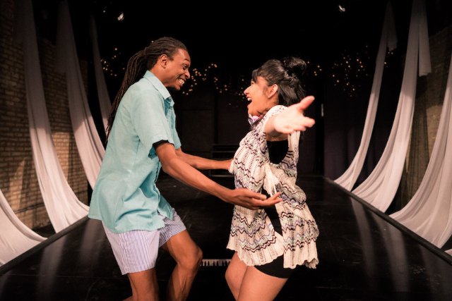 Orpheus and Eurydice are on the beach—two adorable young lovers. He’s lost in his music and in describing his love for Eurydice. He plays the melody he wrote for her on the melodica and asks her to remember it. Meanwhile, he despairs of her lack of rhythm. She just can’t keep the beat.