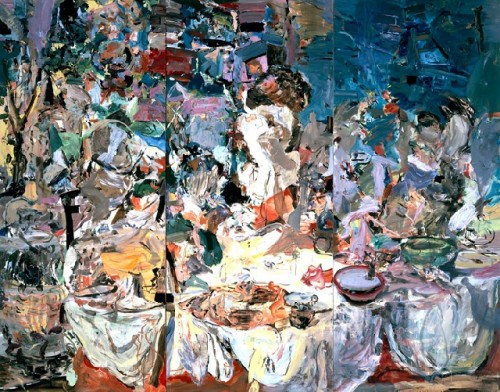 There is the stylistic anachronism to contend with. Just why would a contemporary artist like Brown be so literal in taking from the look and gestures of past generations and in particular deKooning? Yes, he was the greatest "painter" of his era (the greatest "artist" being Pollock). But their styles were so specific that they should be off limits. Does Brown get away with it just because deKooning is no longer with us and his last years were a shadow of his work in its prime? Has the statute of limitations lapsed long enough to just make straight up abstract expressionist paintings? In Nochlin's thesis since that was a macho movement the fact that a woman swings the loaded brush represents progress. But the serious question remains as to how far Brown has progressed from her sources: Titian, Velasquez, Goya, Freud and Bacon, the