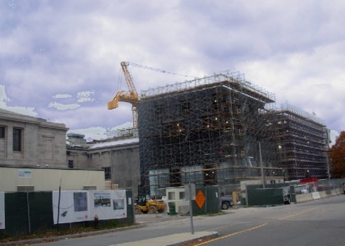 Originally housed in a Venetian Gothic building by Sturgis and Brigham, in Copley Square (1871-1878) the building was razed and replaced by the Copley Plaza Hotel. The valuable property was sold and the MFA moved up Huntington Avenue to its present location on the Fenway. The monumental classical building, designed by Guy Lowell (1870-1927), was constructed between 1906-1909. Following I.M. Pei, Lord Norman Foster is the third major architect to alter the footprint of the MFA. It is safe to predict that, when the construction is complete, the MFA will greatly increase its international status.