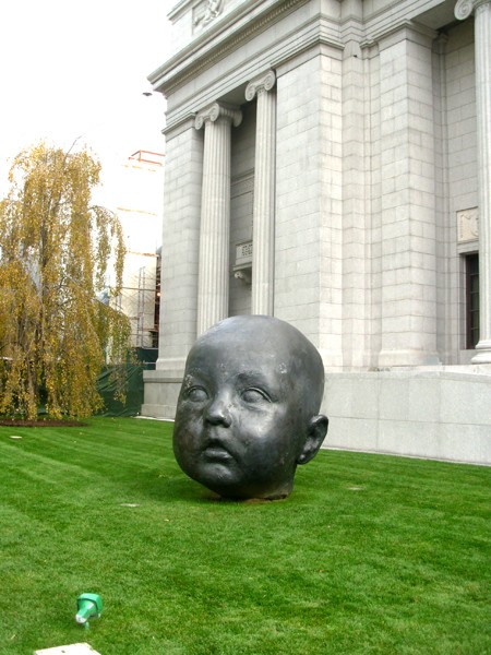 A friendly guard, who recognized me from years of taking gangs of students through the galleries, asked where we had been? He urged us to check out the new Fenway Entrance including two monumental bronze sculptures of baby heads by the Spanish artist, Antonio Lopez Garcia.