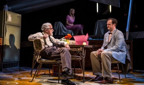 Noah Haidle’s play Smokefall is heady. Its very erudition might disturb if it was not punctuated with apt and engaging humor at every step of the way. Mike Nussbaum stands out as the Colonel, the grandpater familias in Act I, who is losing his mind, but not so much so that he can’t remember having sex four times a day with his wife Lenore when she was alive. Because she is no longer around, he walks often to the graveyard to celebrate former good times .