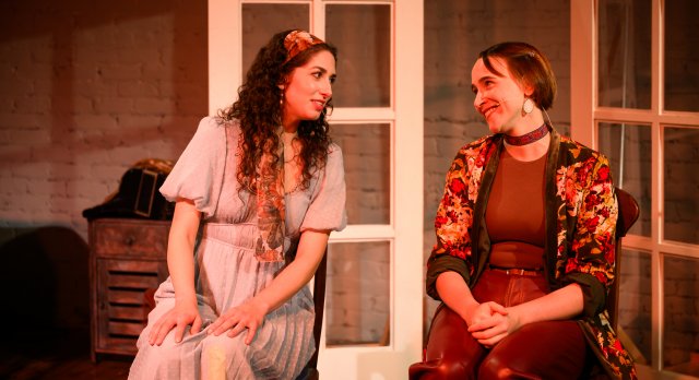 This is perhaps a good time to mention the performing fifth-wheel, Michael Perez. Also the company’s Operations Manager, his primary role in the play is to introduce the songs and play various handheld percussion instruments as needed. It is also appropriate to note that the production misses the opportunity to festoon the theater with signs of the other-worldly holidays, as with skeleton and ghost decorations, or to emit ominous whirring sounds.