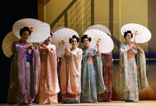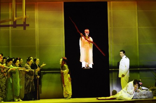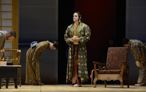 One got the sense that the cast rehearsed with stage director Lillian Groag much longer than the norm – or that she was able to achieve remarkable effects with miraculous efficiency. It seemed that every interaction was choreographed to perfection. (Groag’s direction of Agrippina two seasons ago was similarly detailed. One hopes she is coming back.) One example: when Butterfly’s family learns that she has converted to Christianity, denouncing the traditional gods, they turn on her as one, bending at the waist, pointing to her in accusation, sighing collectively with the orchestra, backing out of the room and out of her life. Groag makes a scene that might be played as a minor moment– it lasts just a minute or two – terribly moving.