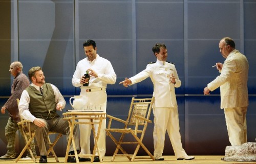 Groag’s addition of a number of silent visions proved to be problematic with other critics, but I found them dramatically justified. I already mentioned the scene before the overture when Butterfly’s father is seen committing seppuku, prefiguring her own. Most controversial was the interpolation Groag made when Butterfly is singing, “Un bel di vedremo,” her great aria of faith in Pinkerton’s return, looking as she is wont from her hillside villa to the harbor. Indeed, I can understand those that think that moment, the greatest single aria in the opera, need not be augmented. It doesn’t. But having Pinkerton enter, casually smoking a cigarette, at the moment Butterfly sings, “I will see him walking up the hillside,” made vivid the visualizations of her desires. And the scene of her and Pinkerton in their American dining room cutting the birthday cake of their American son, now a young teen, breaks your heart at the delusions she harbors of future happiness.