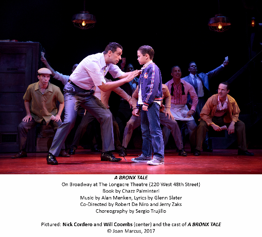 Perhaps this, and Young Calogero’s impressionable mind, can help explain his attraction to the charismatic mobster. He’s among the characters at the center of the bittersweet, humorous, tear-inducing musical, A Bronx Tale, now playing on Broadway.